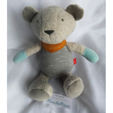 Artikel: Sigikid Spieluhr Gold Collection Bär grau gestreift mit Halstuch in ocker