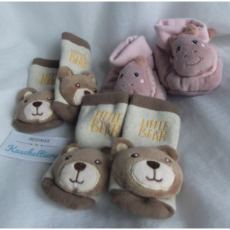 Artikel: Gebrauchtware: Pusblu Babyschuhe mit Rasselgeräusch Dino altrosa und zwei Paar Rasselsöckchen Bär von Beauty