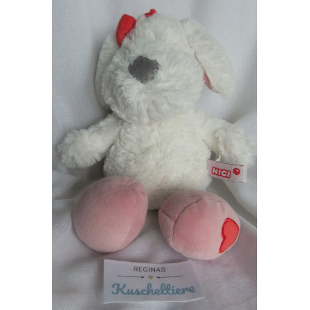 Artikel: Nici Plüschtier Hund Lulu weiß/rosa mit kleinem roten Herzchen und kleiner Schleife