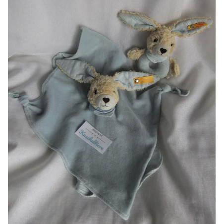 Artikel: Gebrauchtware: Steiff Schmusetuch zweilagig und Rasselgreifling Hase Hoppel