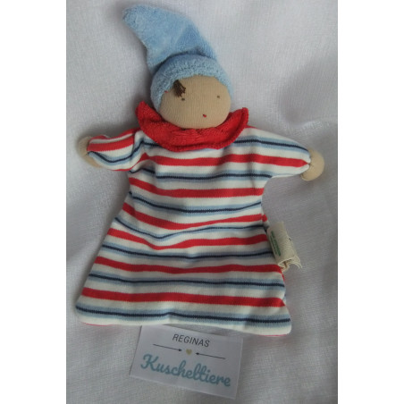 Artikel: Alana Schmusetuch Wichtel/Zwerg gestreift mit roter Halskrause und hellblauer Zipfelmütze