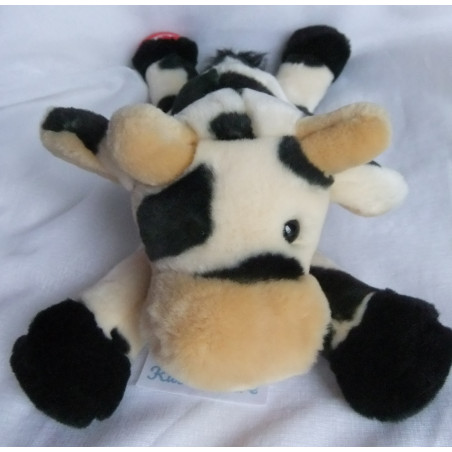 Die kleine Kuh hat sehr weiches Plüschfell. Ihre Äuglein sind aus Kunststoff. Sieht mit dem roten Halstuch und der roten Pfote herzallerliebst aus.