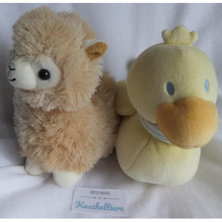1 x Heunec - Plüschtier Lama - braun, weiß - ca. 14 cm lang und ca. 19 cm hoch - sehr gut erhalten