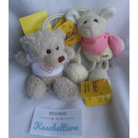 Zwei niedliche Stofftierchen mit Schlaufe zum Anhängen zum Kuscheln, Trösten und Liebhaben für Groß und Klein.