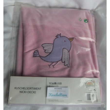 Artikel: Aldi Florett Kuscheldecke - Nicki-Decke Vogel - rosa, lila