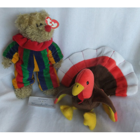 1 x Ty Plüschtier Truthahn Grobbles - braun, rot, gelb, weiß - ca. 20 cm groß - Schlenker - sehr gut erhalten