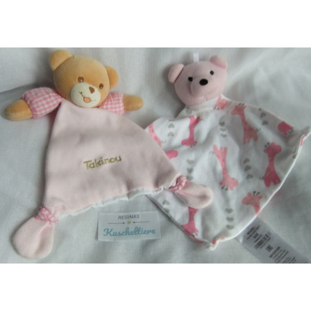 1 x Takinou - Schmusetuch Bär rosa, weiß, hellbraun und rot-weiß kariert - ca. 20 cm lang
