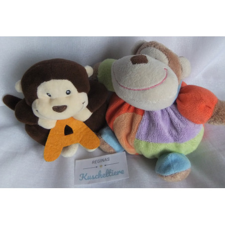 Hachette - ABC Spieltierchen Affe mit Buchstabe A in den Händchen- braun, beige - ca. 13 cm hoch - sitzend - mit Herstellerfähnchen - weichgefüllt
