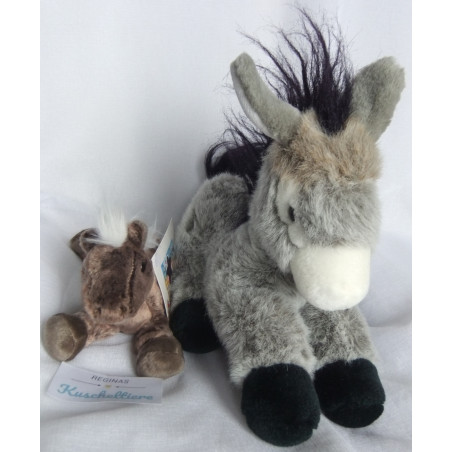 1 x Esel - Marke unbekannt - ca. 25 cm lang und ca. 17 cm hoch - grau-weiß meliert, braun, schwarz - ohne