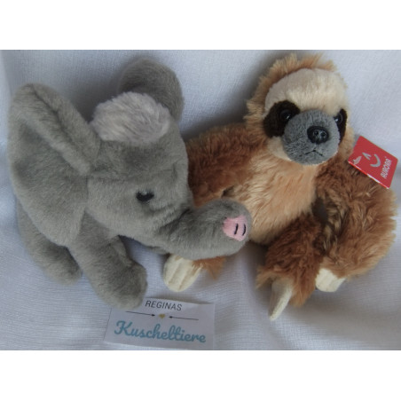 zwei ganz weiche Stofftiere zum Kuscheln, Greifen, Trösten und Liebhaben.