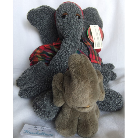 1 x Elefant - grau - ca. 15 cm lang und ca. 14 cm hoch - stehend - Herstellerfähnchen - weiches Plüschmaterial - Augen aus Kunststoff