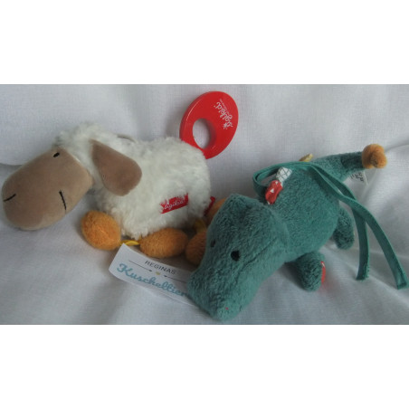 1 x Sterntaler Krokodil Konrad - grün, blau-weiß kariert - ca. 8 cm hoch und ca. 19 cm lang - Melodie: La Le Lu